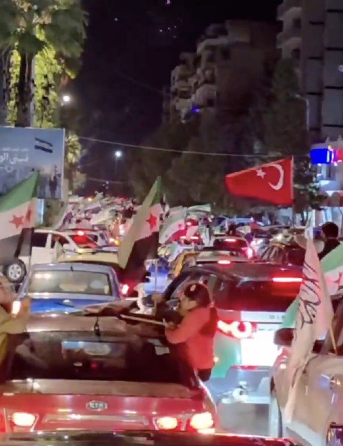 Kutlamalar sırasında ilginç bir detay da dikkat çekti. Bazı vatandaşlar, Türk bayrağı taşıyarak bu sevinçli günü kutladılar.